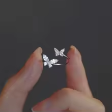 خاتم الاكريليك كريستال فراشة الدائري للنساء