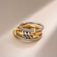 خواتم للنساء 18 كيلو الذهب تصفيح متعدد وصلة متصل بيان حلقة كومة مجوهرات